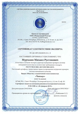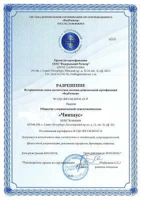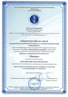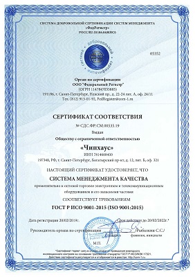 С 2019 года в компании Чипхаус внедрена система менеджмента качества ГОСТ-Р ИСО 9001-2015 (ISO 9001:2015).